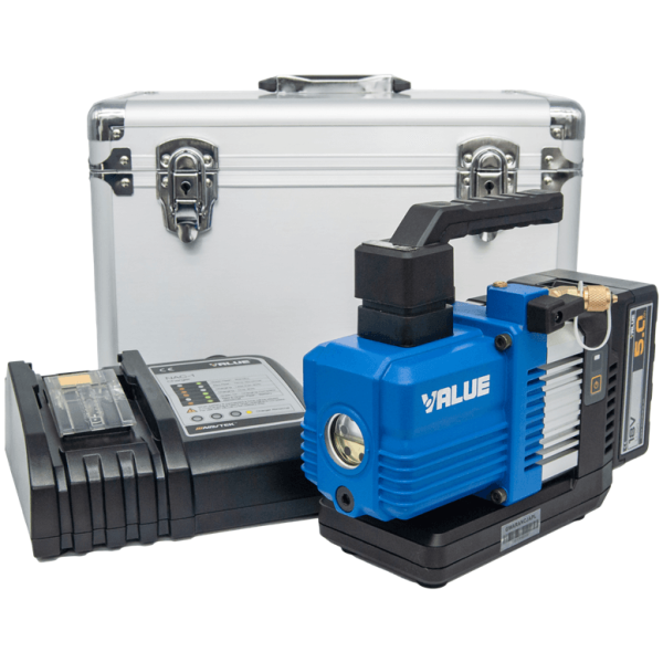 Pompa próżniowa VRP-2SLi, bateria 5Ah, ładowarka, olej, aluminiowy kufer, pasek na ramię |