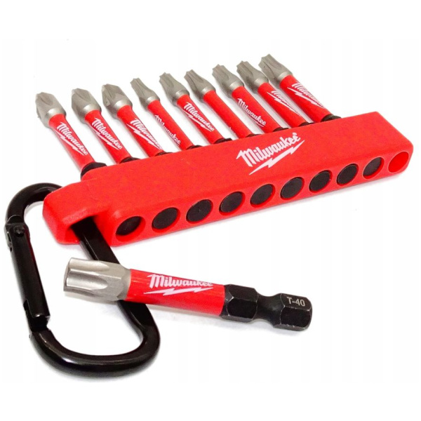 Bity udarowe 10 szt. z karabińczykiem Shockwave Impact Duty – Milwaukee 4932480941