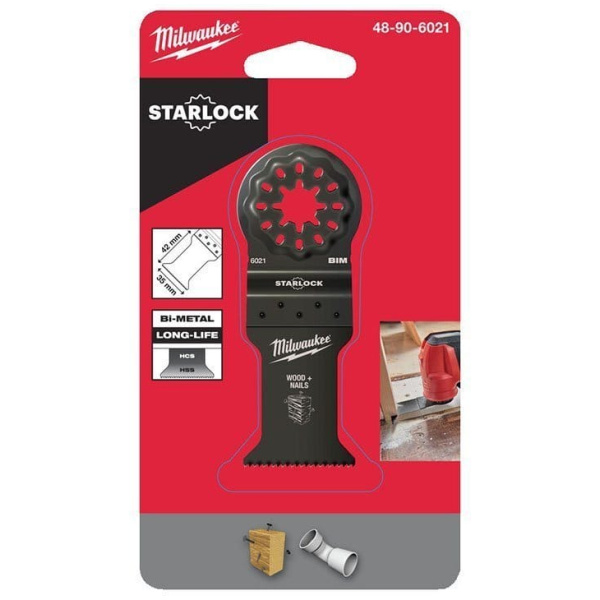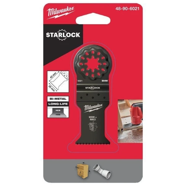 Uchwyt brzeszczotu STARLOCK marki Milwaukee® to uniwersalne rozwiązanie, dzięki któremu brzeszczoty są kompatybilne z wieloma narzędziami oscylującymi. Wymiana brzeszczotów jest łatwa i nie wymaga dodatkowego adaptera. Narzędzie zapewnia 100% przeniesienie mocy z narzędzia na brzeszczot, co pozwala na skuteczne cięcie wgłębne w miękkim drewnie, twardym drewnie lub tworzywie sztucznym.