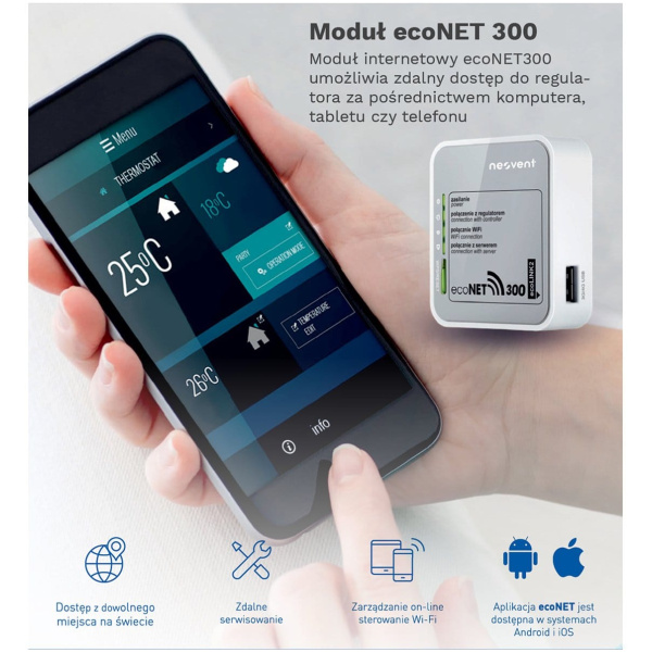 Sterowanie WI-FI możliwe jest dzięki modułowi ecoNET300 ( opcjonalnie, za dopłatą ) :