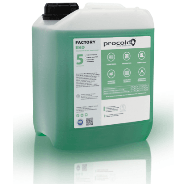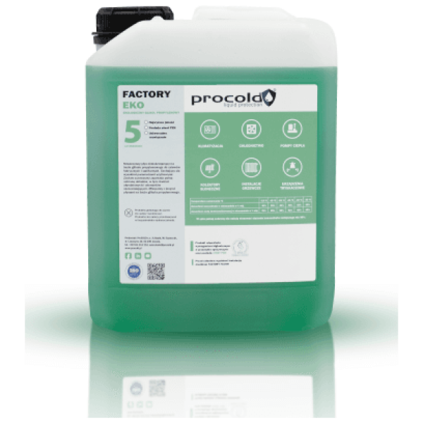 FACTORY EKO to uniwersalny płyn oparty na ekologicznym glikolu mono propylenowym. Znajduje swoje zastosowanie we wszelkich układach hydraulicznych, gdzie priorytetem jest bezpieczeństwo użytkowania. Ze względu na swój wszechstronny charakter, może być stosowany w niższych i wysokich temperaturach pracy. Stanowi świetne rozwiązanie jako medium w instalacjach technicznych, domowych, przemysłu spożywczego i użyteczności publicznej. Skład zapewnia pełną ochronę przed zamarzaniem, korozją oraz powstawaniem osadów, utrzymując cały układ w czystości.