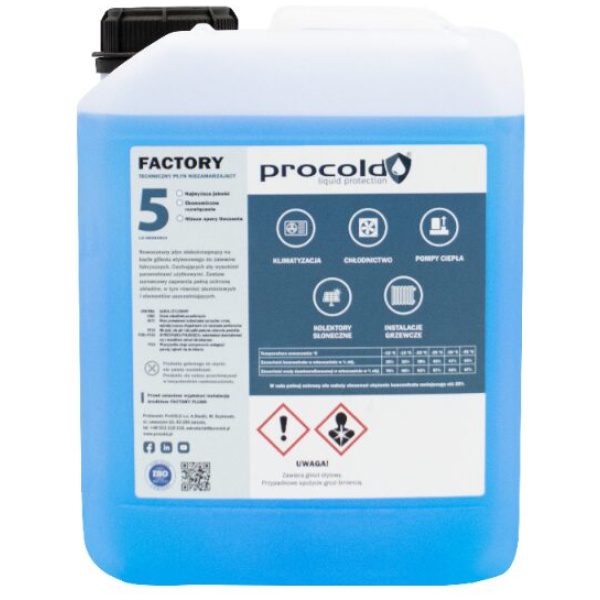 Firma PROCOLD jest producentem płynów do transferu ciepła, stosowanych zarówno w przemyśle, jak i w gospodarstwach domowych. Ich produkty znajdują zastosowanie w instalacjach chłodniczych, klimatyzacyjnych, grzewczych, pompach ciepła, kolektorach słonecznych i wielu innych obszarach. Znane są z doskonałej ochrony przed zamarzaniem, korozją oraz powstawaniem osadów. Dzięki nieustannej ciekawości nowych rozwiązań i ciągłemu rozwojowi technologicznemu, firma oferuje innowacyjne, wysokiej jakości produkty, które spełniają najwyższe standardy branżowe.