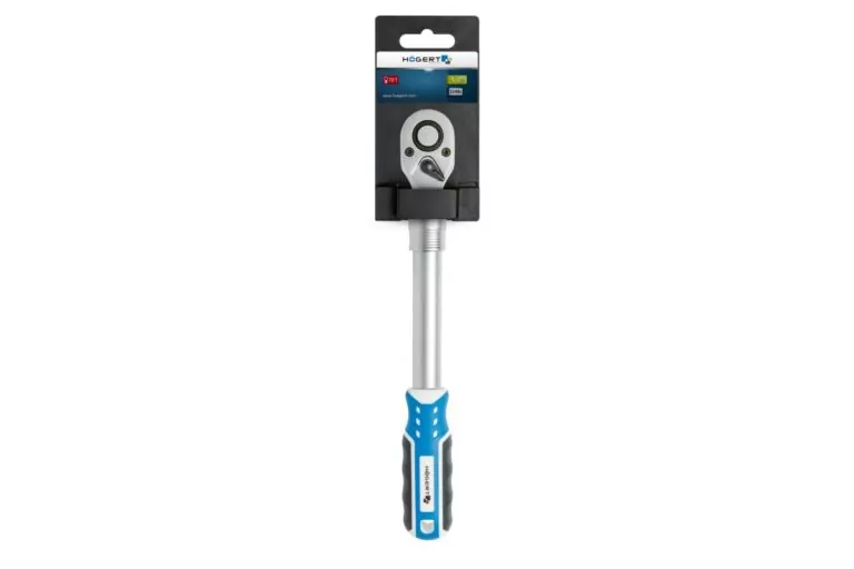 Grzechotka teleskopowa 1/2″, 72 zęby, CrV – HOEGERT HT1R342 to narzędzie, które łączy w sobie innowacyjność, funkcjonalność oraz nieocenioną jakość. Zapewniając rozmiar 1/2″ z mechanizmem zapadkowym o 72 zębach, ta grzechotka zapewnia niezwykłą precyzję i komfort pracy. Jej kąt roboczy wynoszący 5°C umożliwia łatwe dotarcie w trudnodostępne miejsca. Dzięki przełącznikowi kierunku prawo/lewo, praca staje się szybsza i bardziej efektywna, a mechanizm szybkiego zwalniania nasadki pozwala na błyskawiczne wymiany narzędzi. Ponadto, grzechotka została wyposażona w blokadę nasadki z mechanizmem zwalniającym, co zapewnia dodatkowe bezpieczeństwo użytkowania. Wykonana z stali chromowo-wanadowej i chromowo-molibdenowej, charakteryzuje się nadzwyczajną wytrzymałością i odpornością na uszkodzenia. Dzięki tym wszystkim cechom, HOEGERT HT1R342 to idealny wybór dla fachowców oraz majsterkowiczów, dla których jakość i funkcjonalność mają kluczowe znaczenie.