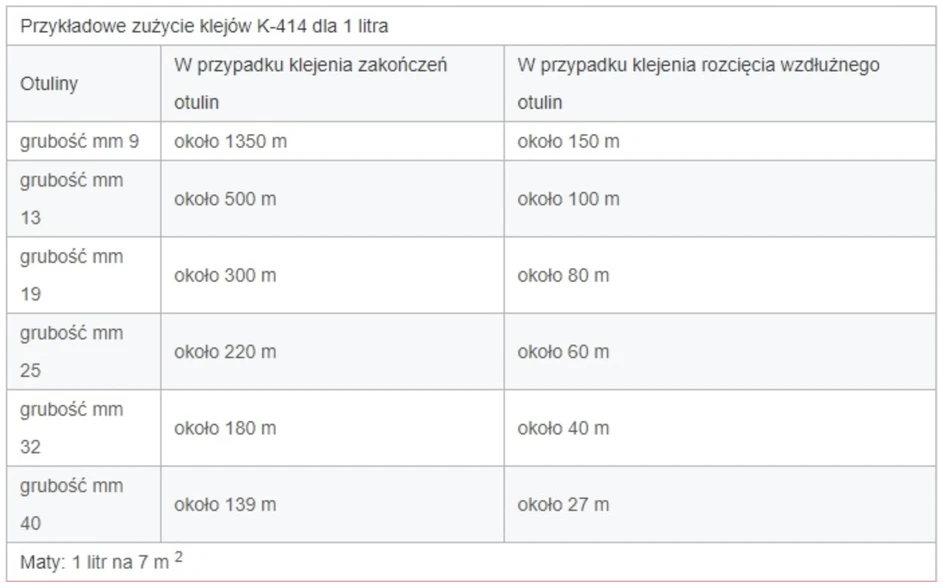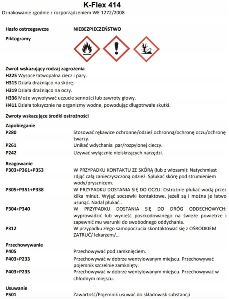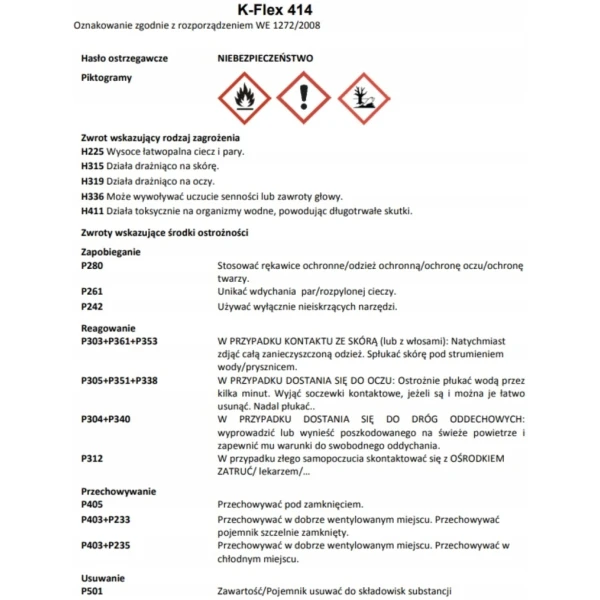 Klej do izolacji kauczukowych K 414 o pojemności 0,5 L marki K-FLEX to niezawodne rozwiązanie do skutecznej izolacji w systemach grzewczych i chłodniczych. Przeznaczony do klejenia doczołowego i mat z spienionego kauczuku. Dzięki klejowi jednoskładnikowemu polichloroprenowemu, można osiągnąć trwałe i stabilne połączenia, które zapewniają ochronę przed ekstremalnymi temperaturami w zakresie od 0 do 110 °C. Klej charakteryzuje się szybkim czasem schnięcia od 5 do 7 minut oraz lepkością na poziomie 600 mPa.s w temperaturze 20°C.