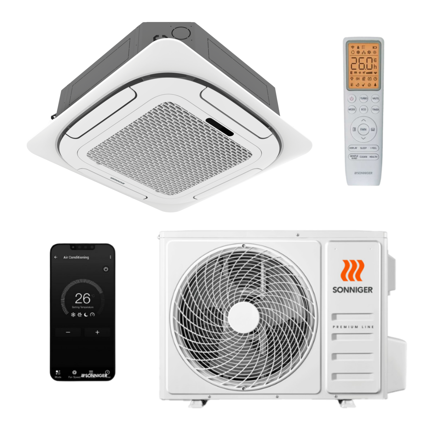Klimatyzator sufitowy biały 5,1 kW (komplet) – SONNIGER Split Cassette CX (Indoor ICX AC0010+11, Outdoor OCX AC0009)