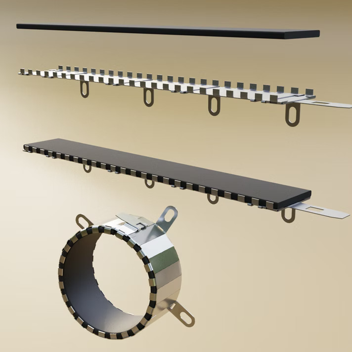Stalowa obudowa segmentowa, wkład pęczniejący, elementy mocujące, elementy łączące |