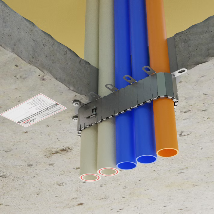 W skład zestawu wchodzi: Stalowa obudowa segmentowa, wkład pęczniejący, elementy mocujące oraz elementy łączące
