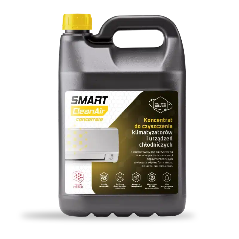 Smart CleanAir to specjalistyczna marka oferująca innowacyjne preparaty do czyszczenia i dezynfekcji systemów klimatyzacyjnych, wykorzystujące aktywne nanocząsteczki srebra. Produkty, dostępne w wersjach dla przemysłu, domów i motoryzacji, skutecznie usuwają zanieczyszczenia, kurz i mikroorganizmy, jednocześnie zapewniając długotrwałą ochronę antybakteryjną. Unikalna formuła, oparta na silnie skoncentrowanej pianie, nie zawiera żrących środków, jest bezpieczna dla różnych powierzchni (plastik, metale, powłoki lakiernicze) i posiada atest PZH potwierdzający jej skuteczność i bezpieczeństwo. Smart CleanAir to także nowoczesne wsparcie techniczne i program lojalnościowy dla serwisantów, co pozwala oferować profesjonalne, łatwe w użyciu i niezawodne rozwiązania dla komfortu i zdrowia użytkowników