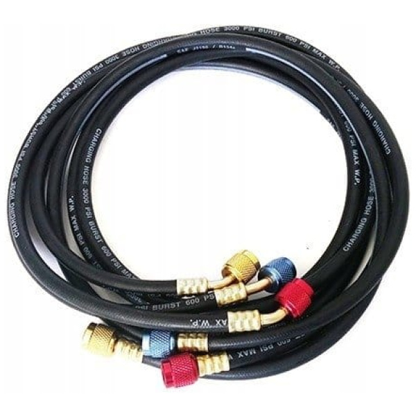 W zestawie poza manometrami otrzymasz wygodną walizkę do przenoszenia oraz 3 węże serwisowe o długości 180cm.
