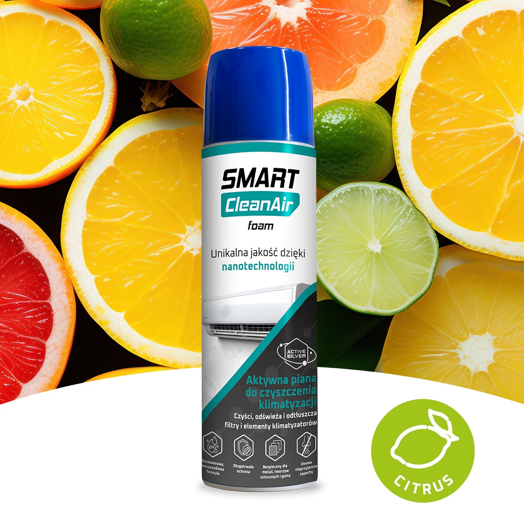 Smart CleanAir to specjalistyczna marka oferująca innowacyjne preparaty do czyszczenia i dezynfekcji systemów klimatyzacyjnych, wykorzystujące aktywne nanocząsteczki srebra. Produkty, dostępne w wersjach dla przemysłu, domów i motoryzacji, skutecznie usuwają zanieczyszczenia, kurz i mikroorganizmy, jednocześnie zapewniając długotrwałą ochronę antybakteryjną. Unikalna formuła, oparta na silnie skoncentrowanej pianie, nie zawiera żrących środków, jest bezpieczna dla różnych powierzchni (plastik, metale, powłoki lakiernicze) i posiada atest PZH potwierdzający jej skuteczność i bezpieczeństwo. Smart CleanAir to także nowoczesne wsparcie techniczne i program lojalnościowy dla serwisantów, co pozwala oferować profesjonalne, łatwe w użyciu i niezawodne rozwiązania dla komfortu i zdrowia użytkowników