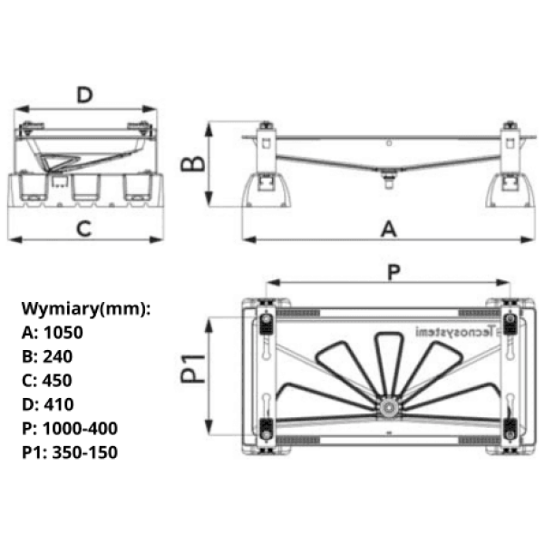 Podstawa INFINITY + taca ociekowa 1050×400 mm + kabel grzewczy 6 m |