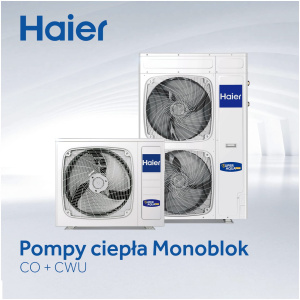 Pompa ciepła 5 kW Monoblok Super Aqua CO + CWU – HAIER AU052FYCRB(HW)