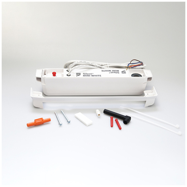 W skład zestawu wchodzi pompka Silent+ Mini White z przewodem zasilającym o długości 1 metra, jak również niezbędne akcesoria, takie jak szablon dopasowania, kolano wylotowe, nakrętki oraz uszczelka dystansowa. Dodatkowo, pompa została wyposażona w system ochrony przed przegrzaniem, co zwiększa bezpieczeństwo jej użytkowania. Dzięki kompaktowym wymiarom, urządzenie zajmuje niewiele miejsca, a jego nowoczesny wygląd sprawia, że idealnie wpasuje się w każde otoczenie.