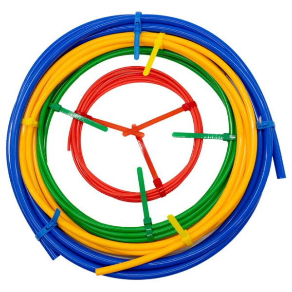 czerwony: 1/4", 4 mm; zielony: 3/8", 7 mm; żółty: 3/8", 7 mm; niebieski: 5/8", 12 mm |