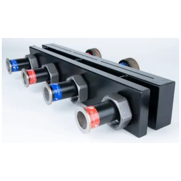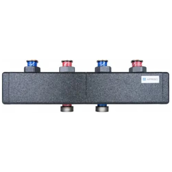 Rozdzielacz dla dwóch obiegów grzewczych, stosowany do instalacji grzewczych i chłodzących celem rozdzielania medium na dwa niezależnie od siebie pracujące obiegi. Montaż rozdzielacza odbywa się pomiędzy źródłem ciepła / chłodu a grupami pompowymi. Rozdzielacz posiada dwie pary przyłączy zasilających i powrotnych obiegów pompowych oraz przyłącza od strony instalacji dostosowane do grup pompowych Afriso PrimoTherm. Całość dodatkowo zaizolowana termicznie.