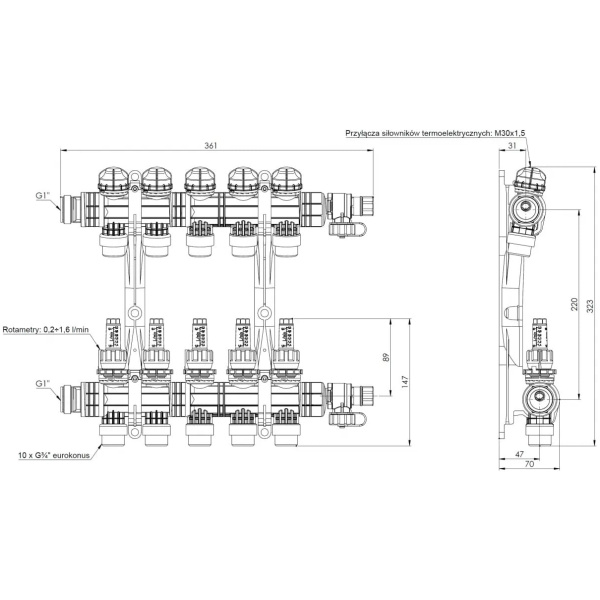 - Z możliwością regulacji przepływu i dodatkowego montażu siłowników termoelektrycznych