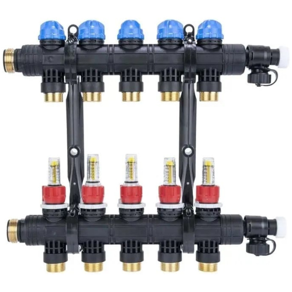Rozdzielacz instalacji płaszczyznowych wykonany z poliamidu PA66 to innowacyjne rozwiązanie firmy Afriso wprowadzające na rynek rozdzielacze pozbawione elementów stalowych i mosiężnych ,a co za tym idzie całkowicie odporne na korozje. Dzięki tym właściwością rozdzielacz świetnie nadaje się nie tylko do instalacji grzewczej, ale również do instalacji rozprowadzenia chłodu w instalacjach podłogowych i sufitowych.