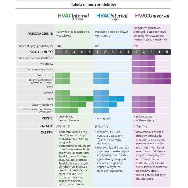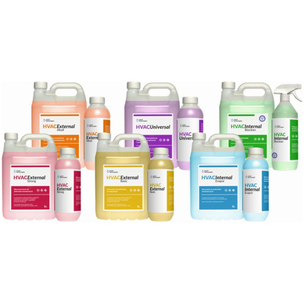 HVAC INTERNAL EVAPOR to skuteczny Koncentrat do czyszczenia, odświeżania i dezodoryzowania parowników jednostek wewnętrznych klimatyzacji, tac skroplinowych, filtrów oraz wentylacji bytowej. Preparat ma strukturę bezkwasową przez co jest w pełni czyszczonych powierzchni. Szybko i skutecznie usuwa takie zabrudzenia jak kurz, pył oraz osady organiczne i tytoniowe. Pozostawia świeży zapach. HVAC Internal Evapor to produkt w pełni bezpieczny, nie wymaga spłukiwania wodą i nie powoduje uszkodzeń czyszczonych powierzchni. Produkt stosowany regularnie pozwala utrzymać wydajność oraz bezawaryjność jednostek klimatyzacyjnych i wentylacyjnych zapewniając wymaganą czystość powietrza. Produkt do użytku profesjonalnego.