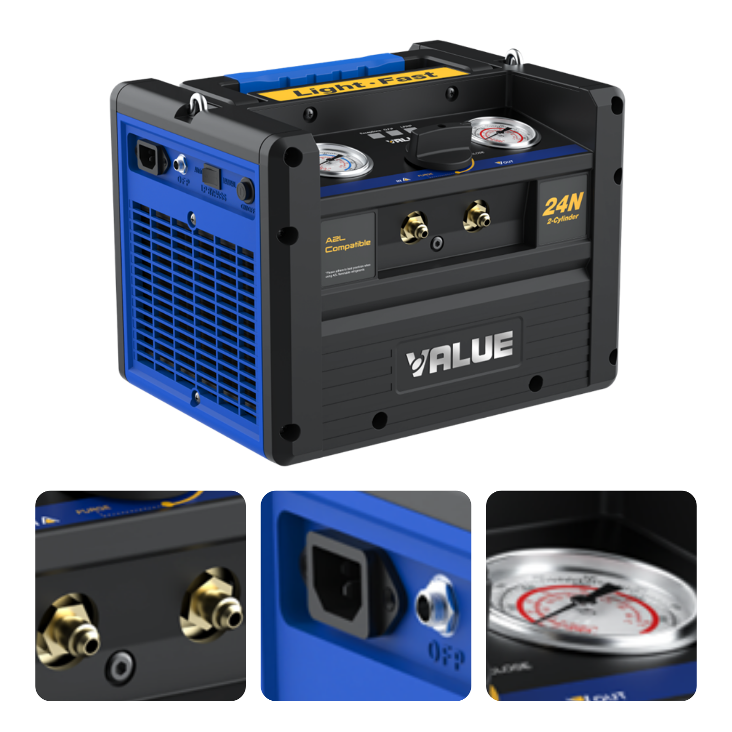 Stacja odzysku czynnika chłodniczego VALUE VRR24N jest narzędziem stworzonym z myślą o profesjonalistach zajmujących się klimatyzacją i chłodnictwem. Umożliwia efektywne odzyskiwanie, a także szkolenie cennych czynników chłodniczych, co przyczynia się do ich ochrony oraz do przestrzegania norm ochrony środowiska. Innowacyjna konstrukcja stacji zapewnia użytkownikom wygodę podczas pracy oraz wysoką wydajność, co jest kluczowe w branży serwisowej.