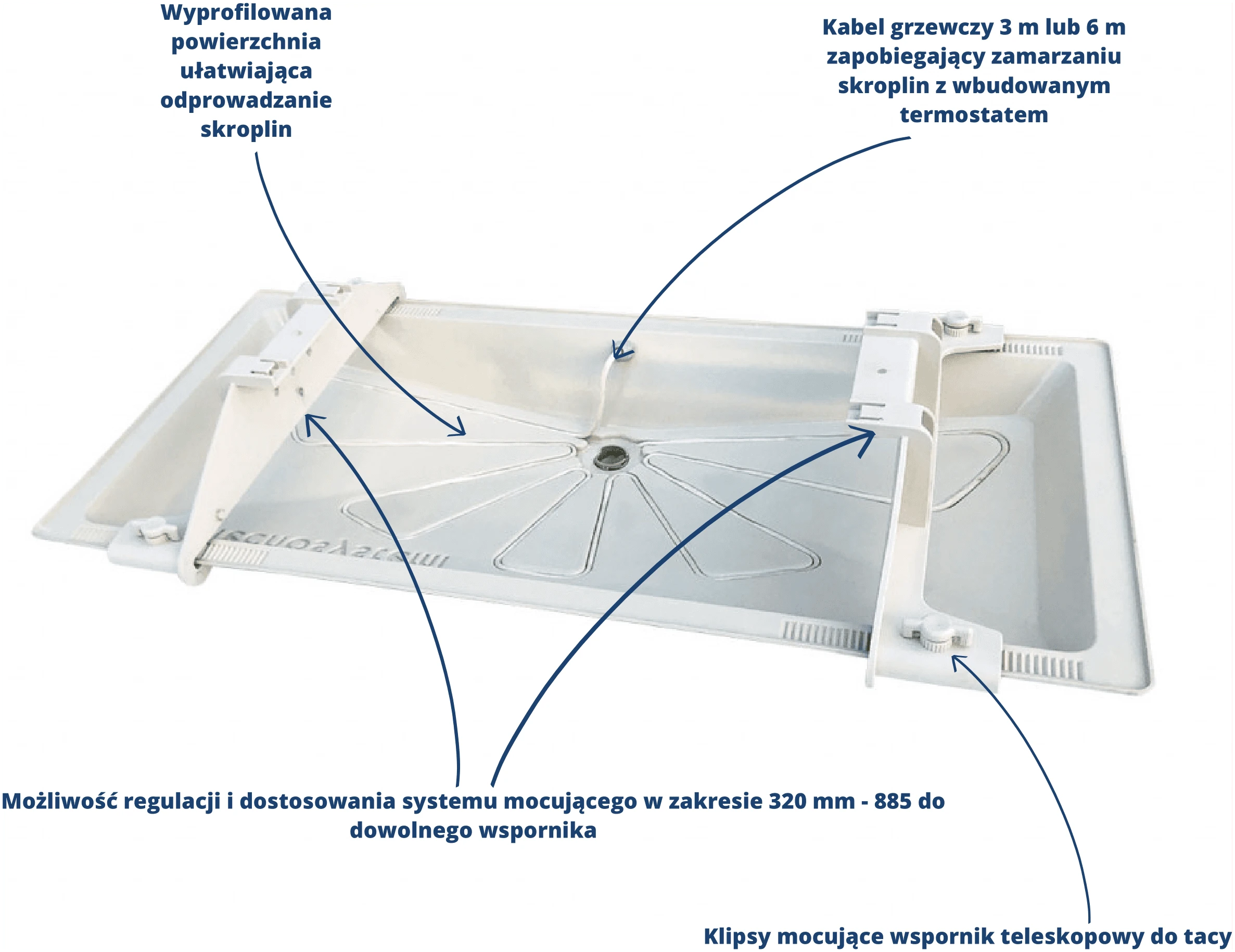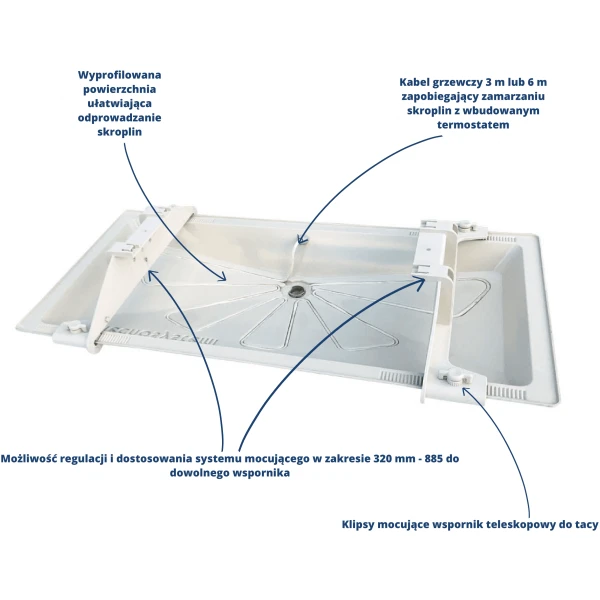 Taca ociekowa „Blue river” 850×400 mm + kabel grzewczy 3 m + uchwyty mocujące – SMART CLIMA SCD300068