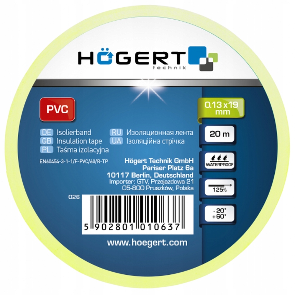 Taśma izolacyjna PVC żółto-zielona – HOEGERT HT1P286
