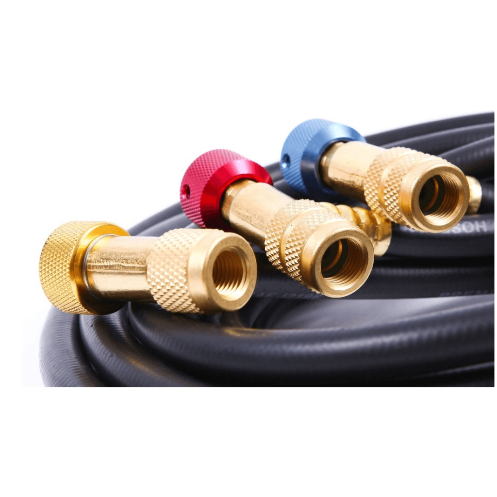 - Elastyczny wąż o długości 150 cm, przeznaczony do serwisowania układów klimatyzacyjnych i chłodniczych.