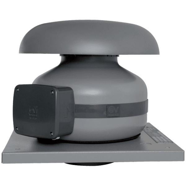 Promieniowy wentylator dachowy o średnicy nominalnej 160mm. Obudowa ze stali trawionej i fosforanowanej/płyta dachowa pokryta poliestrowym lakierem proszkowym, odporna na agresywne działanie czynników atmosferycznych. 3 prędkości wentylatora poprzez opcjonalne sterowanie TRIO-CA (kod. 12869). Przystosowany do regulacji prędkości obrotowej poprzez obniżenie napięcia.