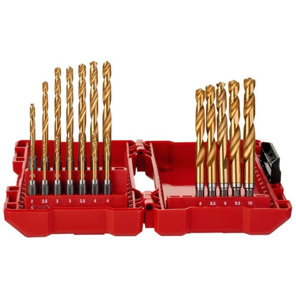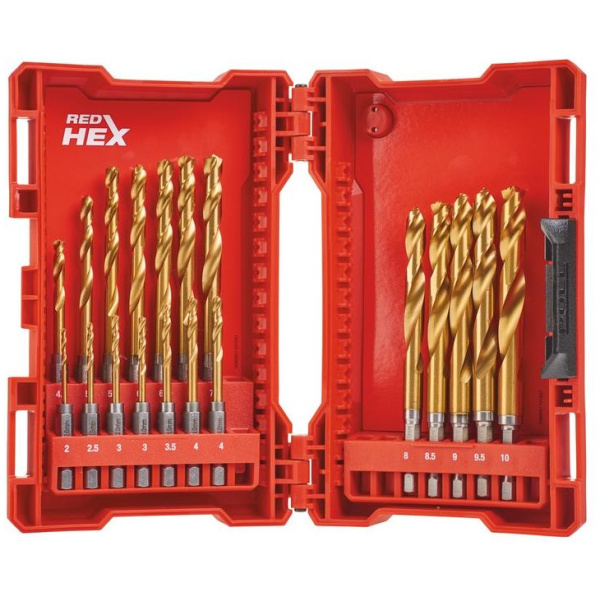 Wiertła do metalu 2-10 mm 19 szt. HSS-G TiN RED HEX – Milwaukee 48894760