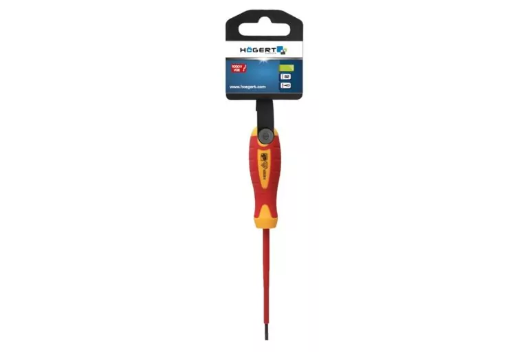 - Izolowany wkrętak płaski o długości 100 mm zapewniający bezpieczeństwo do 1000V