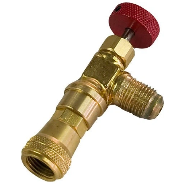 Zawór z gwintem 5/16″ SAE (1/2″-20UNF) do bezstratnego napełniania instalacji chłodniczych i klimatyzacyjnych czynnikiem R-410A. Służy do podłączenia butli z czynnikiem do zaworu dostępowego instalacji chłodniczej lub klimatyzacyjnej i napełnienie jej w taki sposób aby ograniczyć do minimum ubytek czynnika z węży napełniających.Przyrząd ten jest jednym z narzędzi które musi być na wyposażeniu serwisanta, przedsiębiorcy zajmującego się obsługą urządzeń zawierających substancje kontrolowane lub HFC (f-gazy).