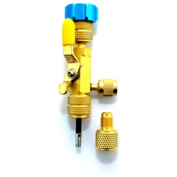Zestaw SHINEYEAR CH-19BV-CV umożliwia wymianę uszkodzonego wętyla w zaworze serwisowym bez konieczności odzysku czynnika. Zestaw pozwala na wprowadzenie trzpienia celem wykręcenia zaworu, a następnie odcięcie zaworem możliwości ubytku czynnika.