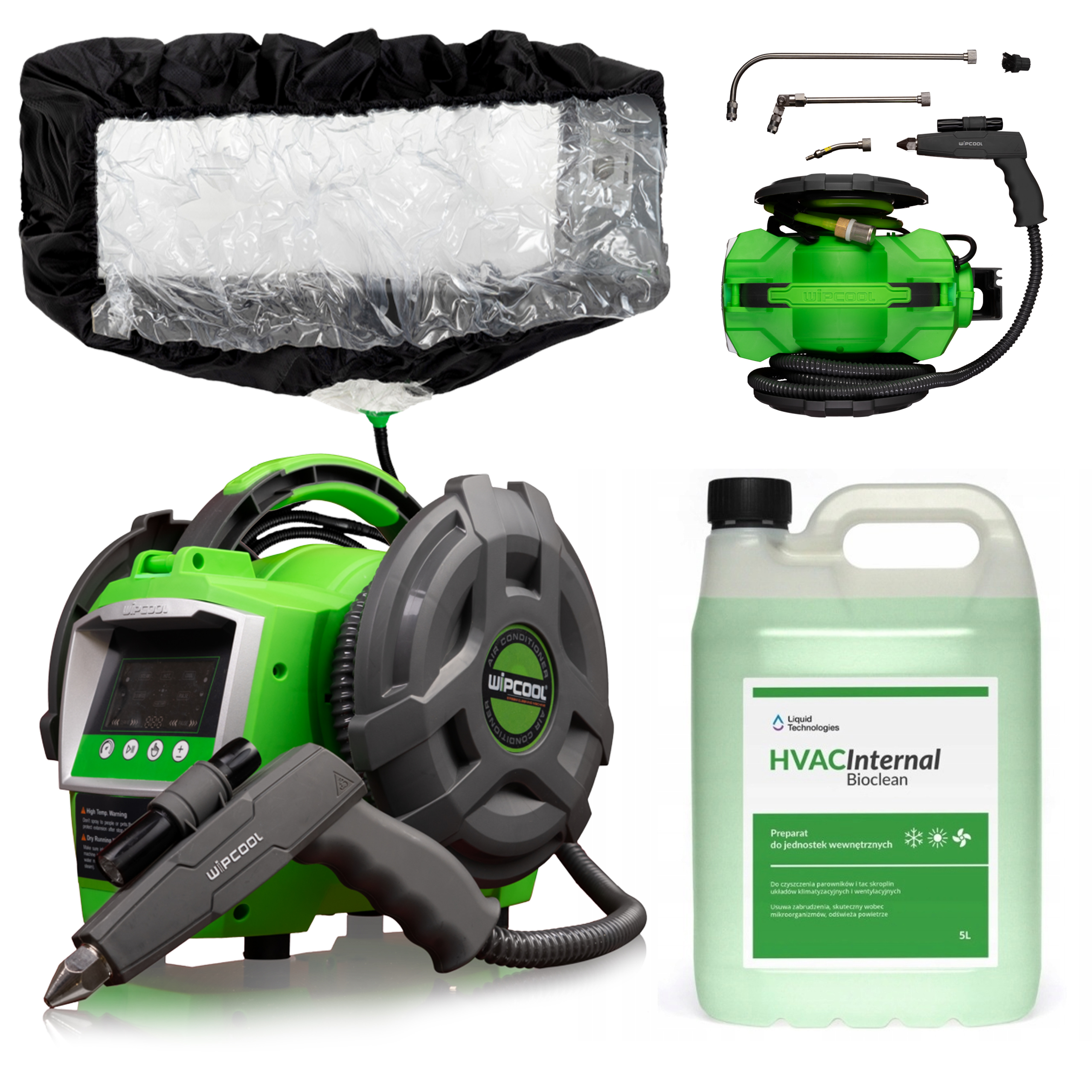 Myjka ciśnieniowa z parownicą WIPCOOL C30S, pokrowiec do mycia klimatyzacji ściennej WPICOOL CSC-1, płyn HVAC Internal BioClean |